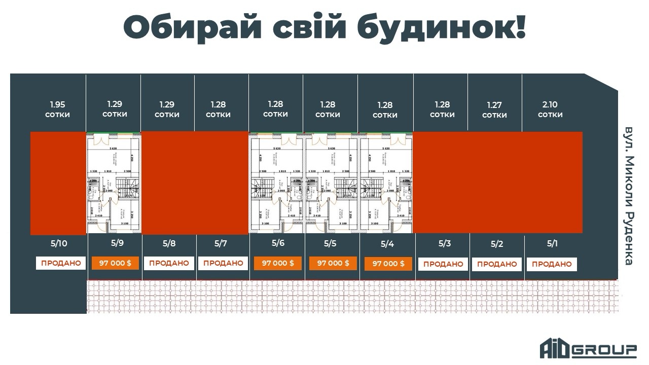 Ціна від 97 000 в залежності від площі ділянки.