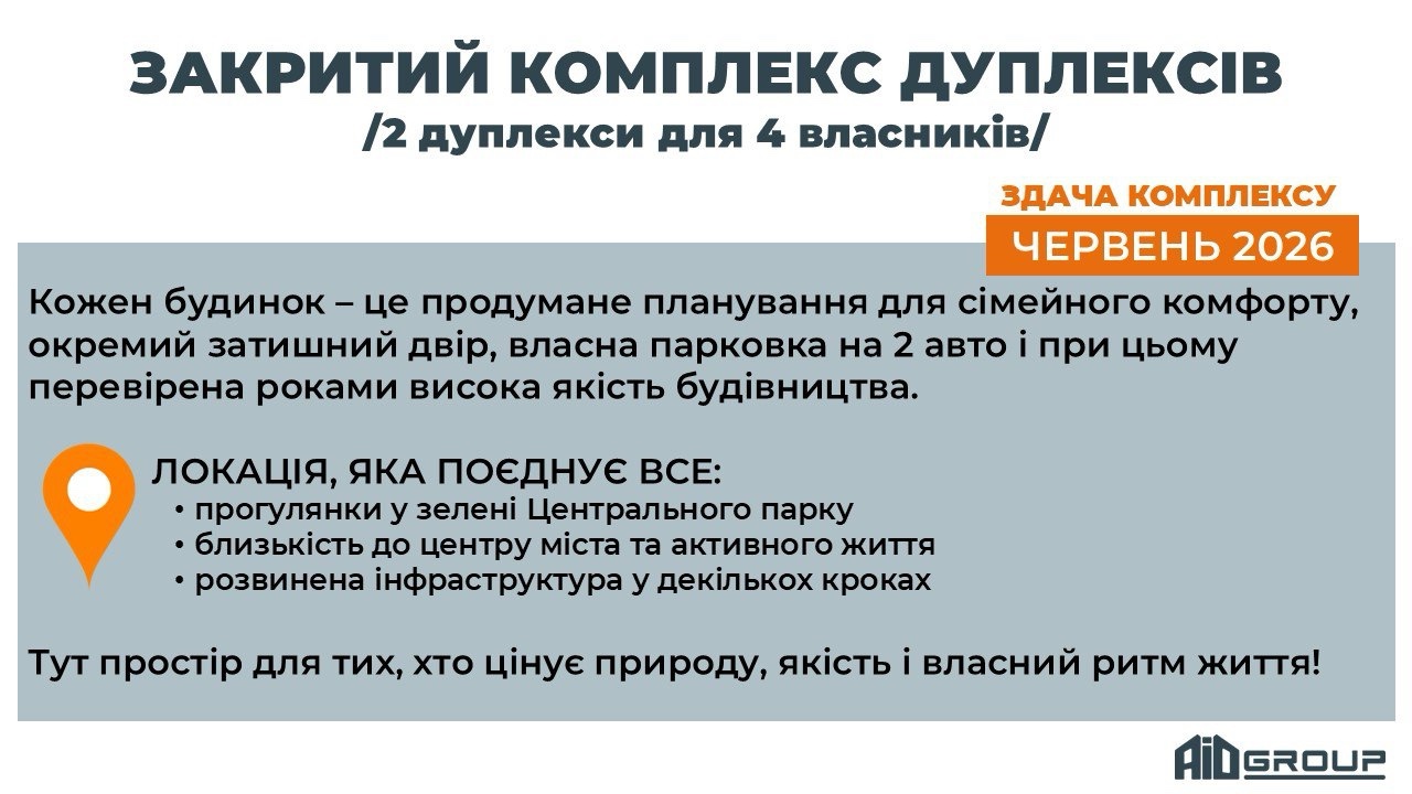 Новий проект від AiD Group- закритий комплекс на 2 дуплекса для 4х власників